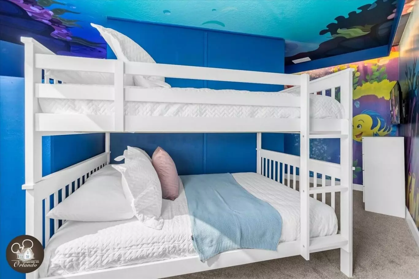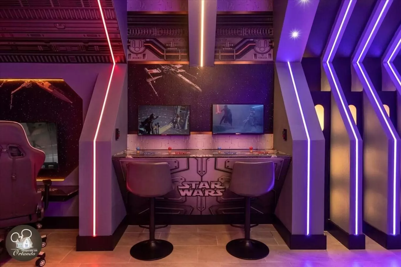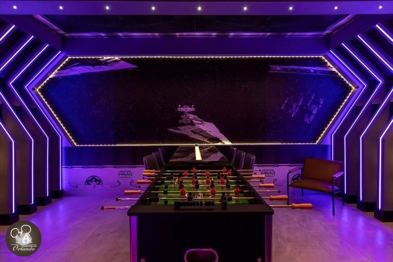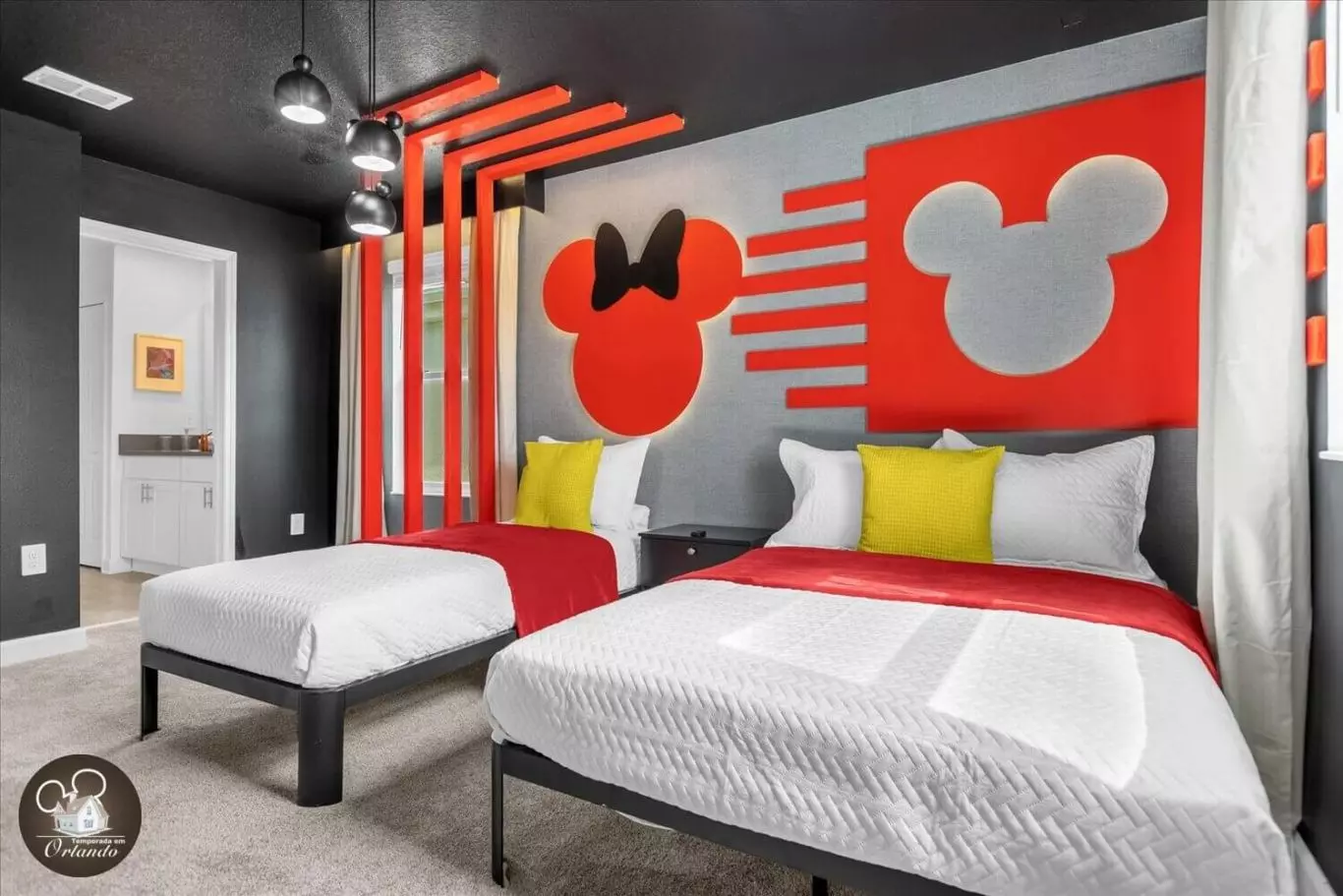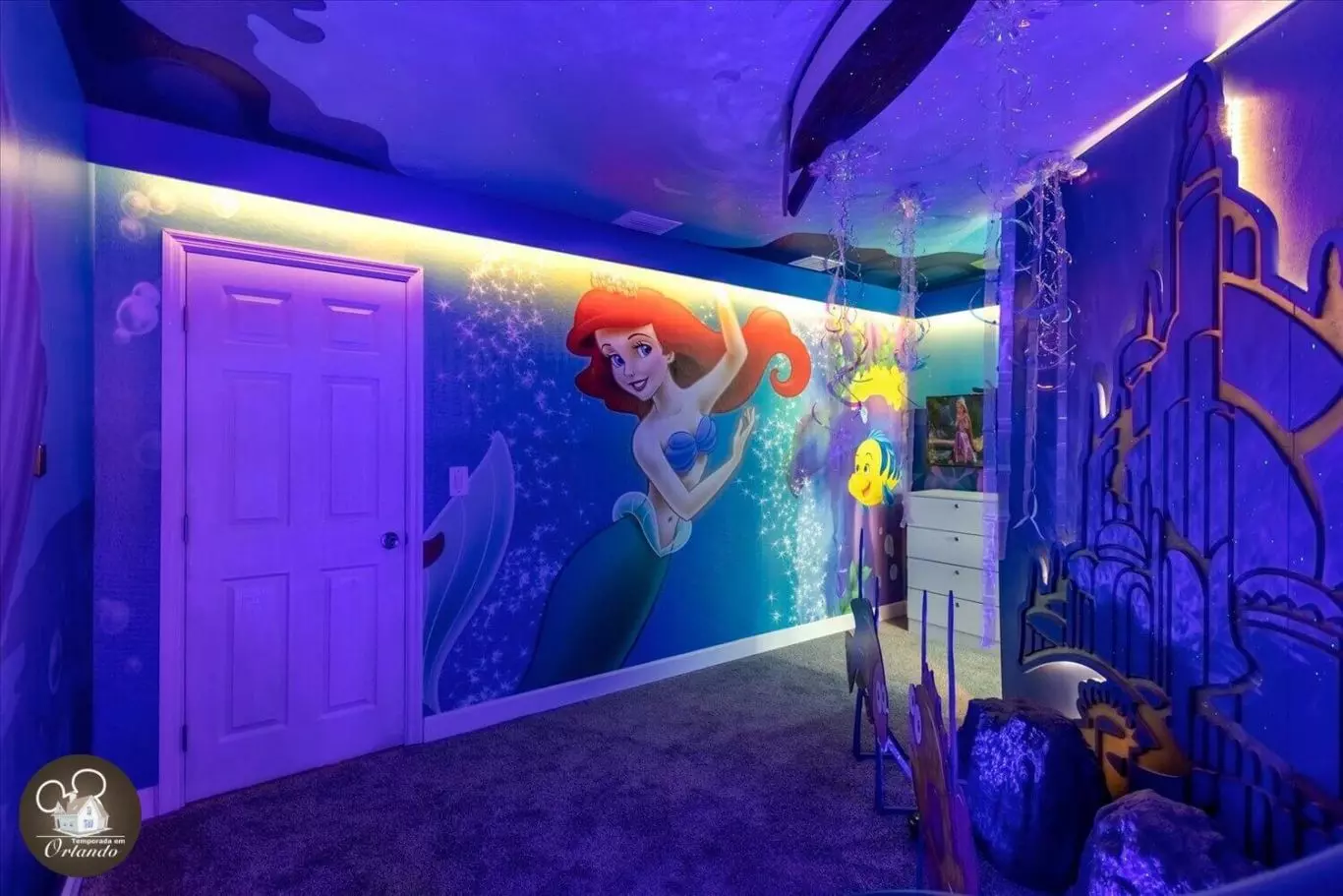 Lindo layout moderno. O destaque da casa foi a sala de jogos. Simplesmente adorável. Os quartos também eram deslumbrantes. Luminárias lindas em todos os ambientes. Um dos meus quartos favoritos era o quarto da sereia, bem como a sala de telefone vermelha. Tão criativo. Se você estiver viajando com a família para aproveitar a área da Disney, esta acomodação seria perfeita para você.