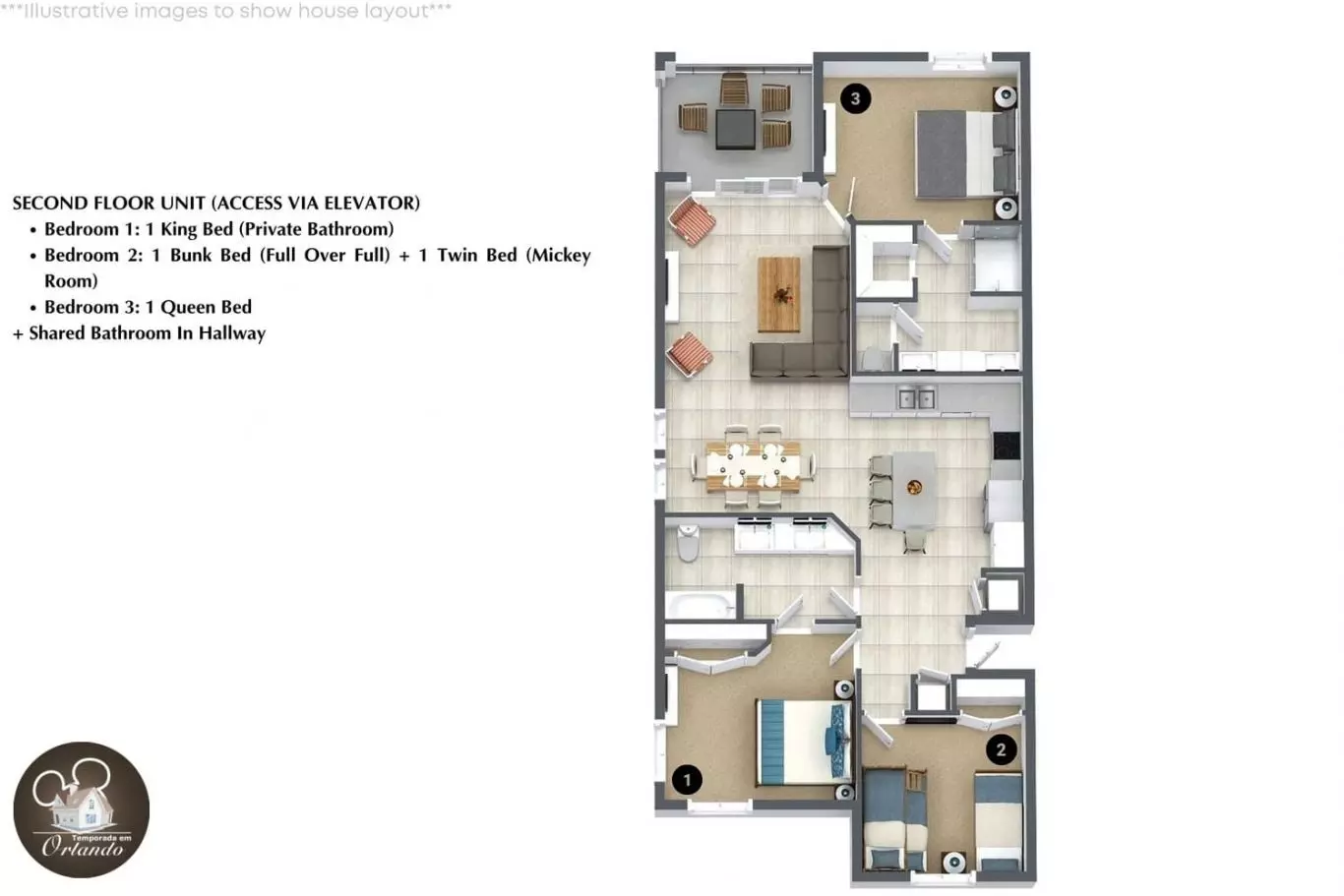 Aproveite uma estadia confortável, elegante e memorável. Este apartamento moderno está localizado no Storey Lake Resort, um dos condomínios mais completos da região, a apenas 8 minutos dos parques da Disney. Ideal para famílias brasileiras que buscam praticidade, segurança e lazer.