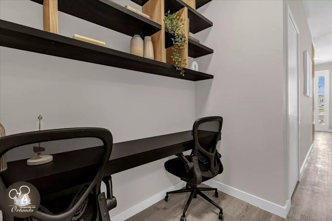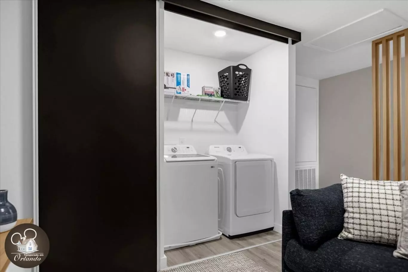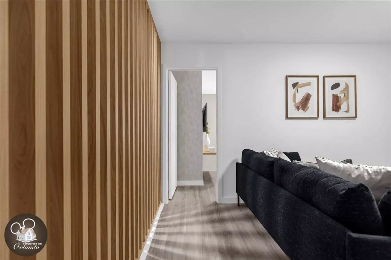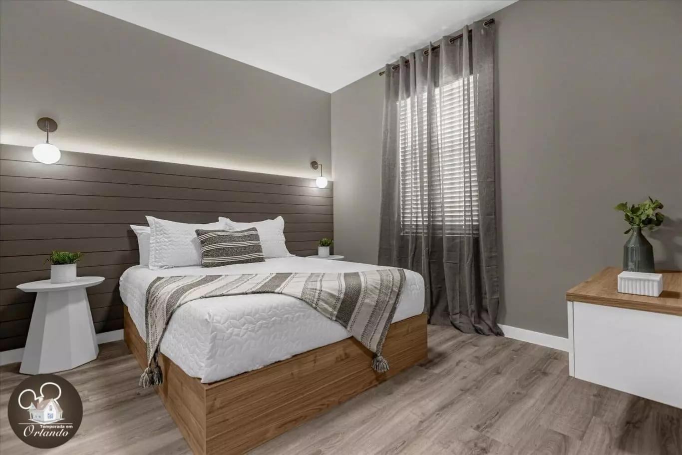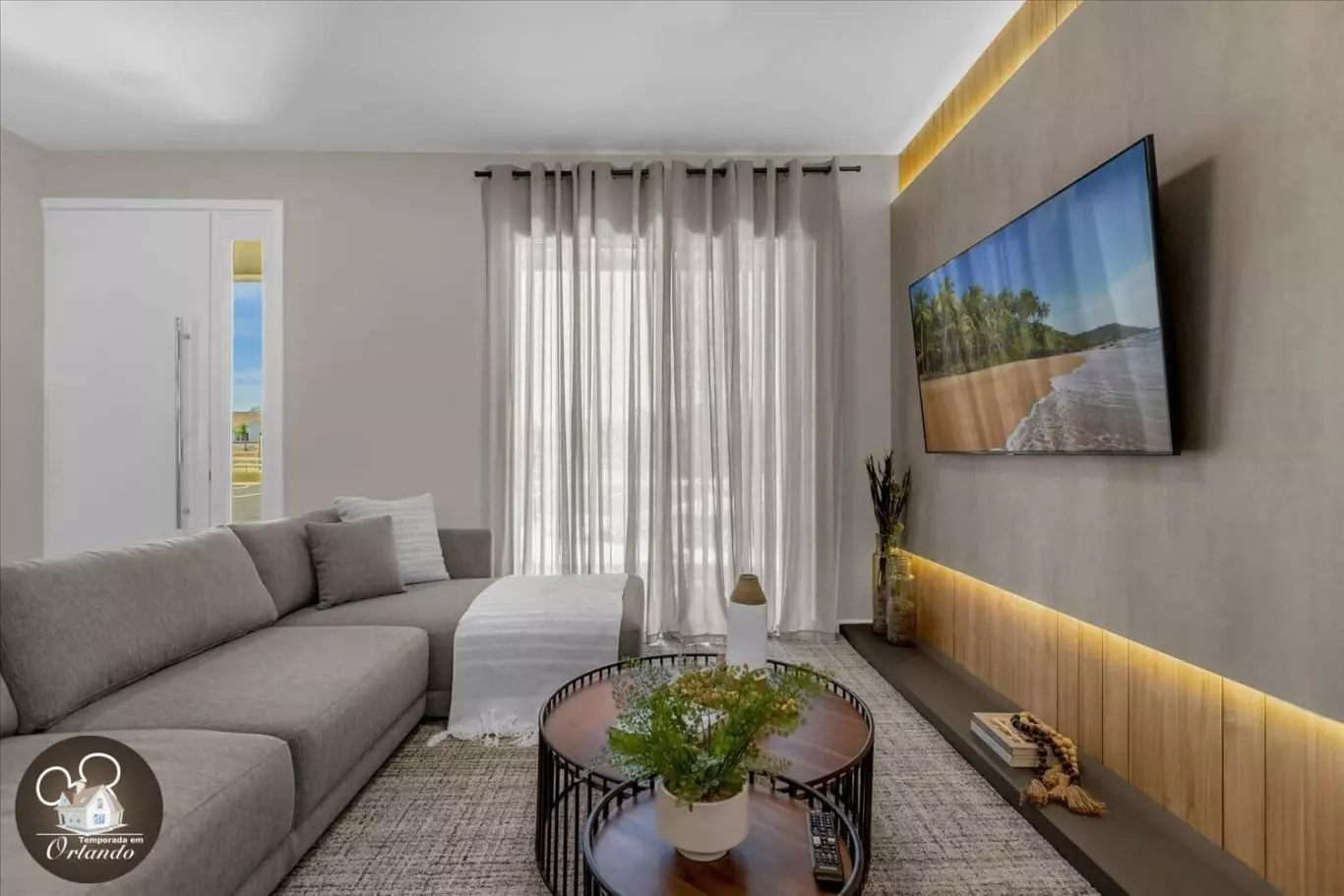 Ao entrar, você será recebido por uma sala de estar integrada com sala de jantar e cozinha americana. A decoração é harmoniosa, com móveis novos, iluminação natural e ambientes bem distribuídos. Cada detalhe foi pensado para tornar sua experiência em Orlando inesquecível.