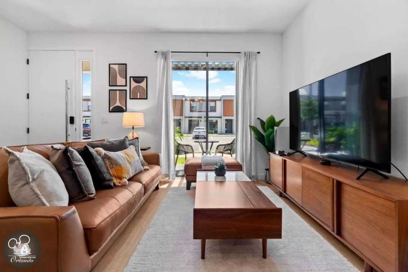 A sala de descanso é perfeita para maratonar filmes com a família após um dia nos parques.
