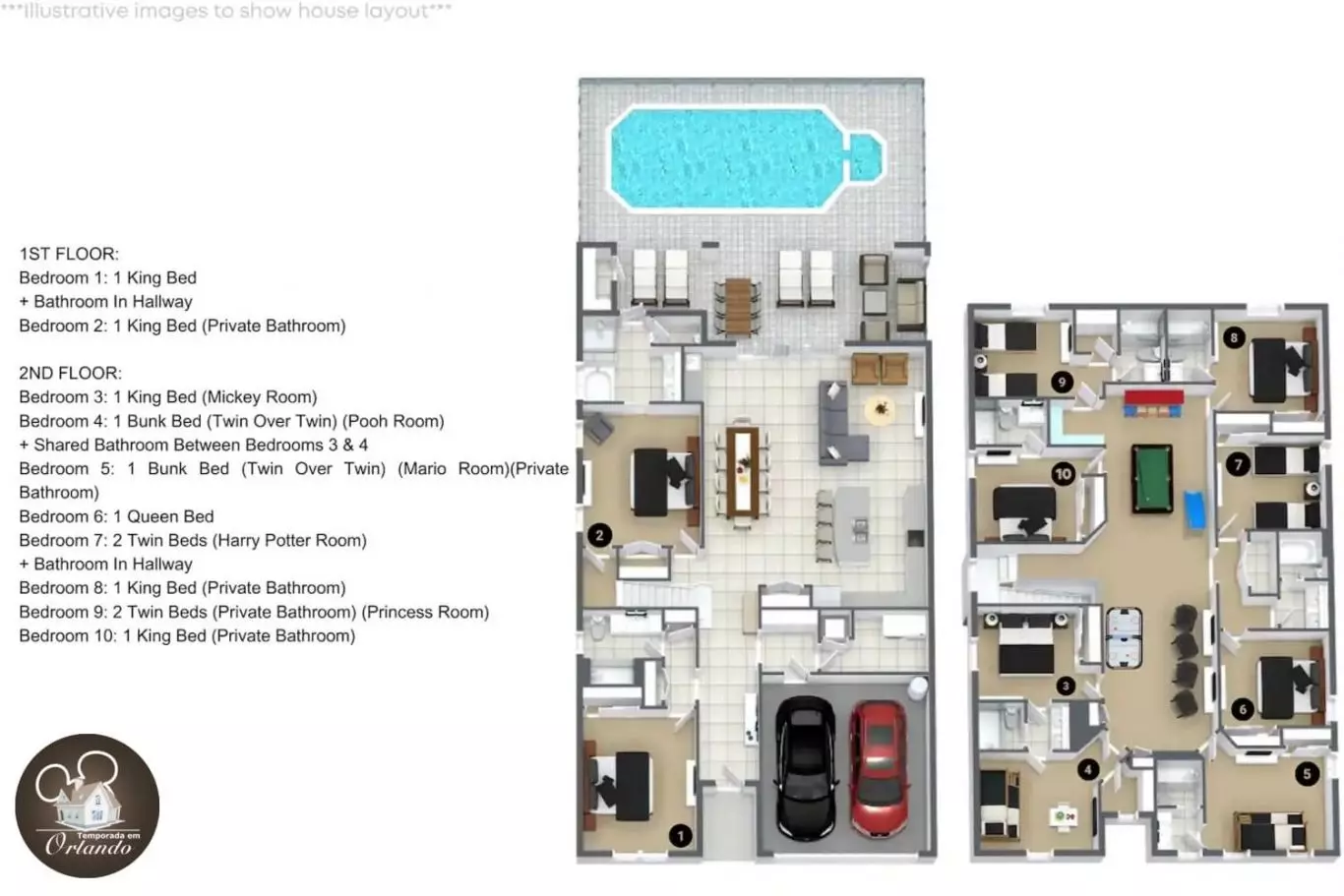 Prepare-se para uma experiência inigualável em Orlando. Apresentamos a você uma mansão de alto padrão, situada a poucos minutos dos parques da Disney. Esta propriedade extraordinária, com 10 quartos e uma decoração encantadora, é ideal para famílias extensas e grupos de amigos que buscam uma estadia repleta de luxo, entretenimento e comodidade.