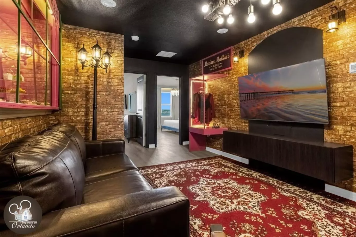 O local ideal para assistir a um bom filme e relaxar depois de um dia repleto de aventuras pelos parques. Um ambiente confortável e acolhedor que convida ao descanso.