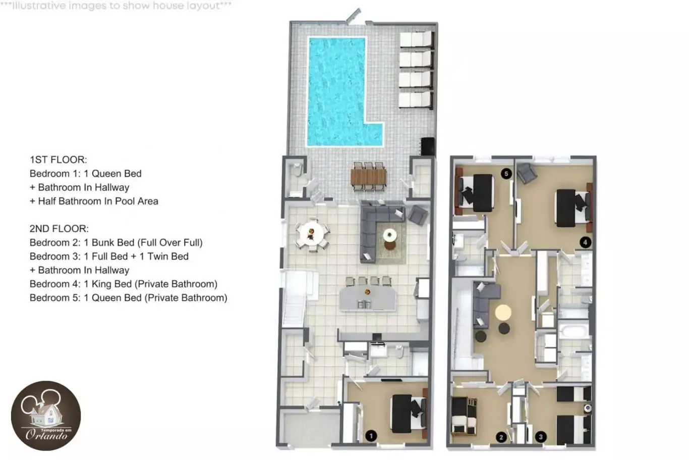 Prepare-se para uma experiência inigualável em Orlando. Apresentamos a você esta casa de alto padrão, totalmente nova, situada a poucos minutos dos parques da Disney. Esta propriedade extraordinária com 5 quartos é o lugar ideal para grupos grandes, famílias extensas e amigos que desejam uma estadia repleta de luxo, entretenimento e conveniência.