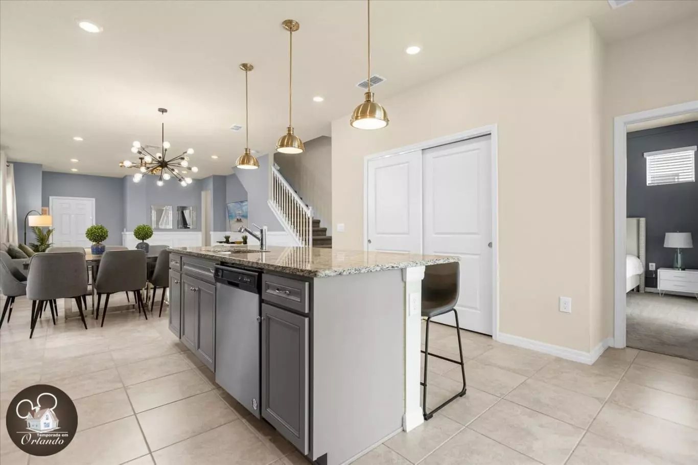 A casa está localizada a poucos minutos dos principais parques da Disney, com fácil acesso a lojas, restaurantes e diversas atrações da região.
