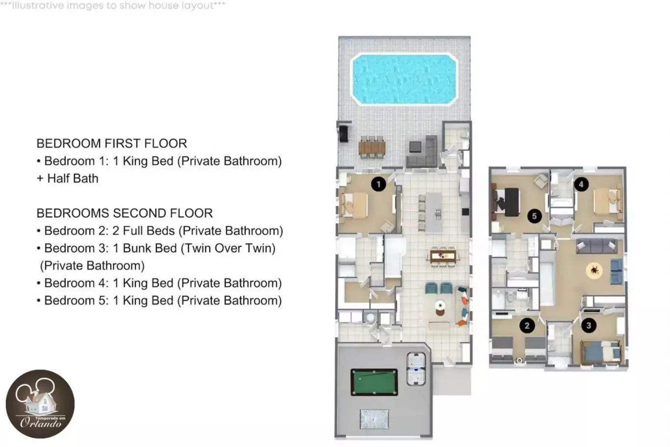 Prepare-se para uma experiência inigualável em Orlando. Apresentamos esta casa de alto padrão, totalmente nova, situada a poucos minutos dos parques da Disney. Esta propriedade extraordinária, com 06 quartos, é ideal para grupos grandes, famílias numerosas ou amigos que desejam conforto, sofisticação e diversão em um só lugar.
