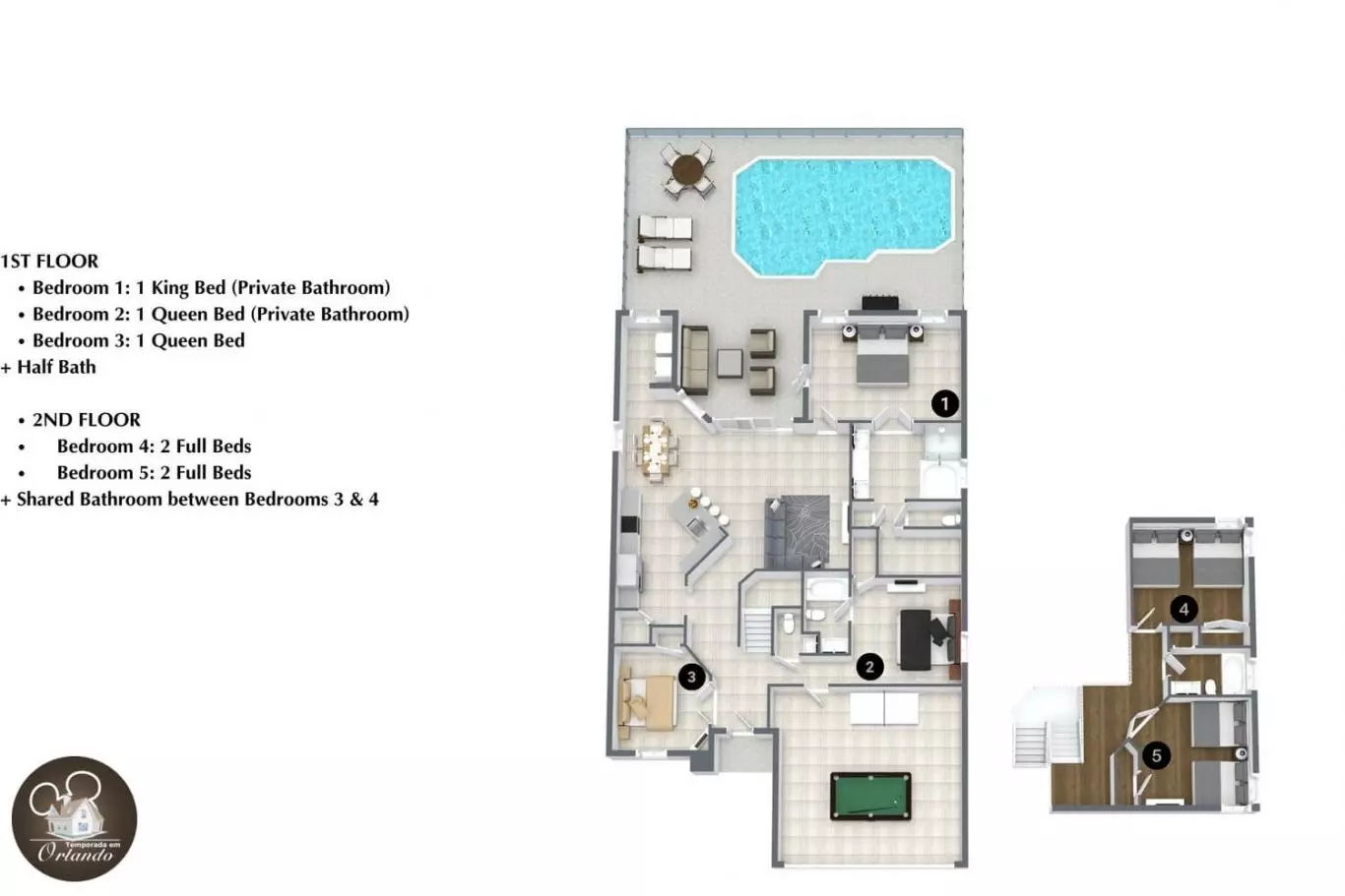 Esta foi uma ótima estadia confortável! Tivemos uma festa de 10 mais de 2 anos. O host era proativo e receptivo. As camas e travesseiros eram confortáveis em todos os quartos. Highchair e Pack N Play fornecido pelo host. Gostei da abertura da sala de estar e da sala de jantar. Conseguimos mover facilmente uma cadeira de rodas no piso inferior e o quarto grande/banheiro no piso principal. Decoração muito fofa para crianças nos quartos superiores. Meu neto adorou. A área da piscina é agradável e tem um portão de segurança para crianças, o que foi um ótimo recurso. A sala de jogos também é um bom recurso. Ótimo valor e ótima localização perto da área da Disney! Se você tem uma festa grande e quer ficar juntos, essa é uma ótima opção!